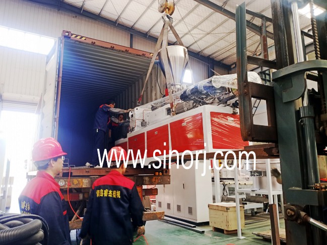 PVC墻板生產(chǎn)線裝柜發(fā)貨東南亞,這幾天連續(xù)裝柜中