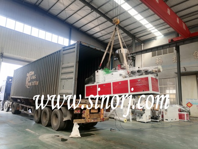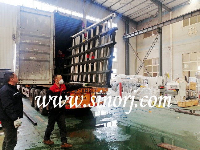PVC木飾面生產(chǎn)線 型材生產(chǎn)線裝柜發(fā)貨中